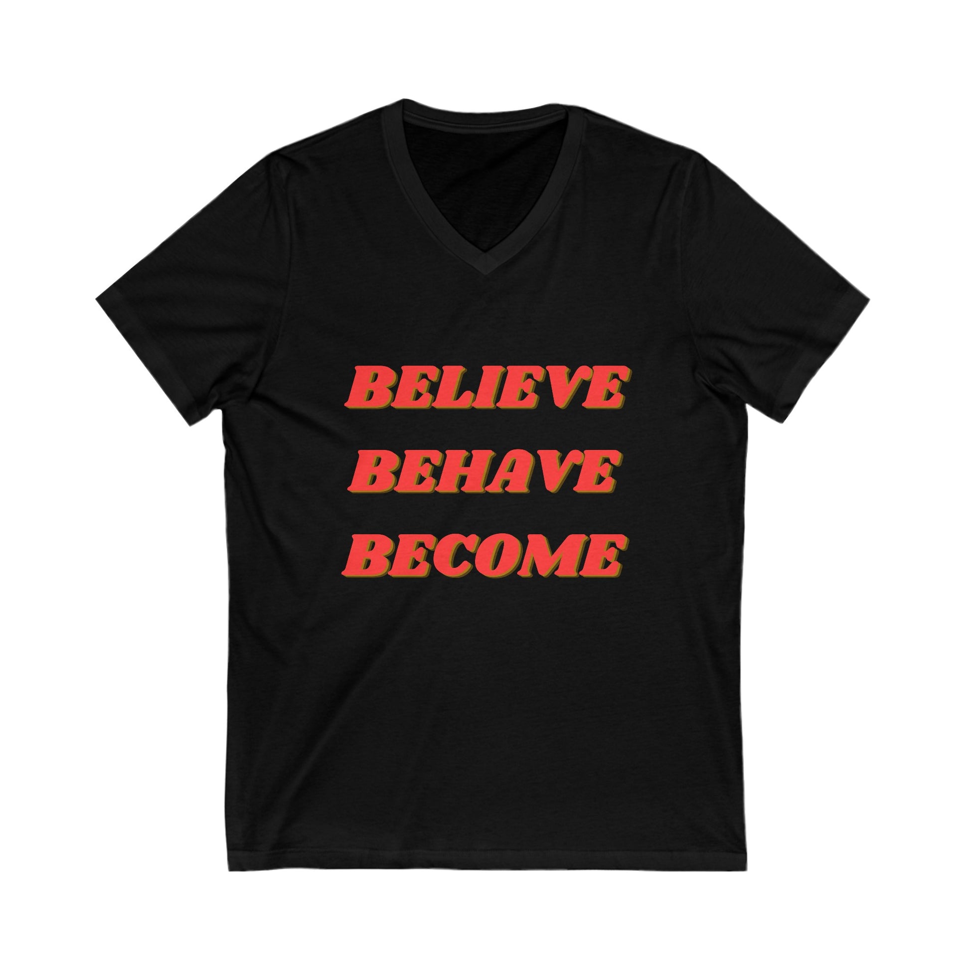 Believe Behave Become - Unisex Jersey Short Sleeve V-Neck Tee